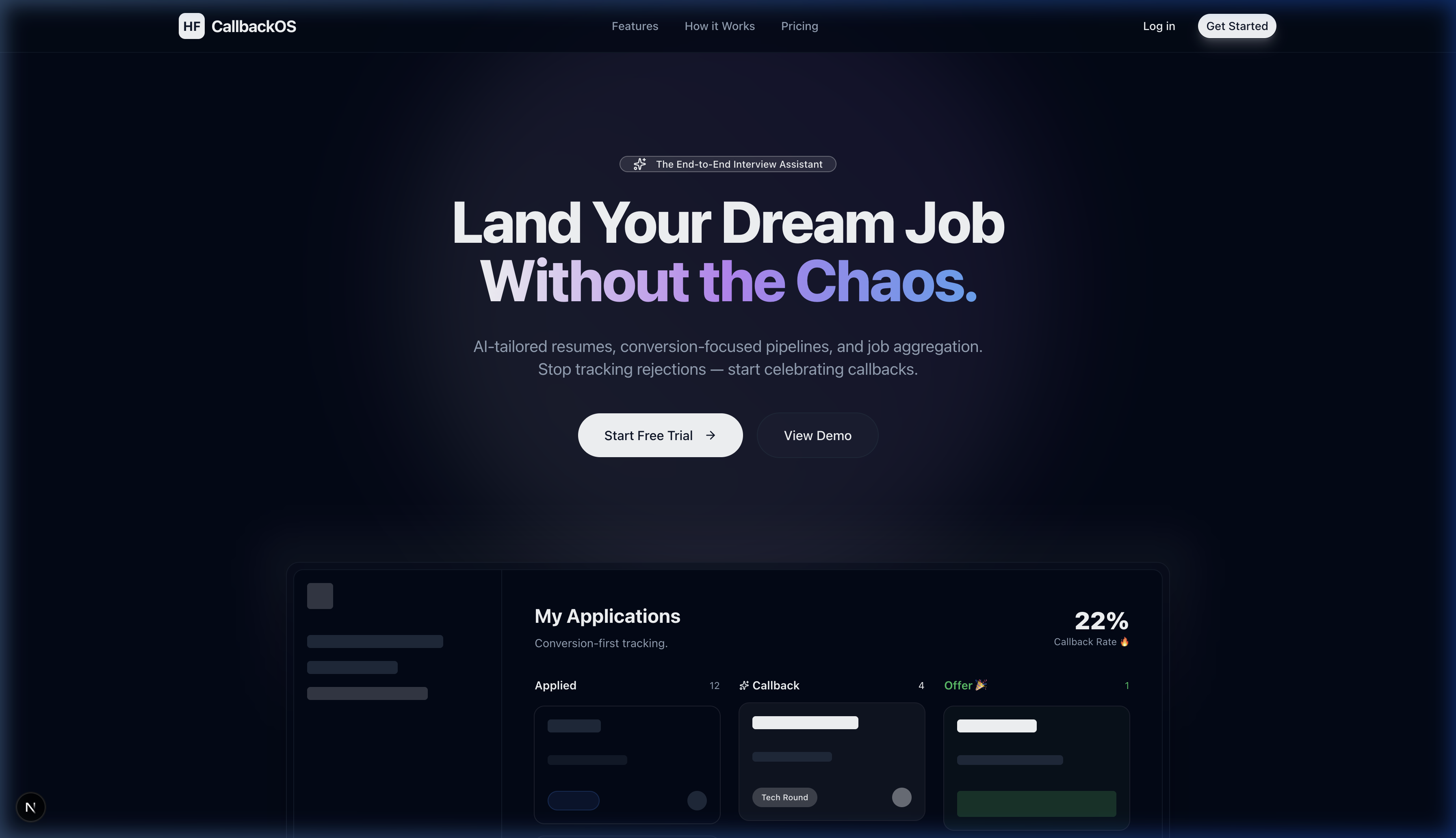 An end-to-end platform for job seekers. Features AI-tailored resume generation and a conversion-focused dashboard designed to optimize interview pipelines.